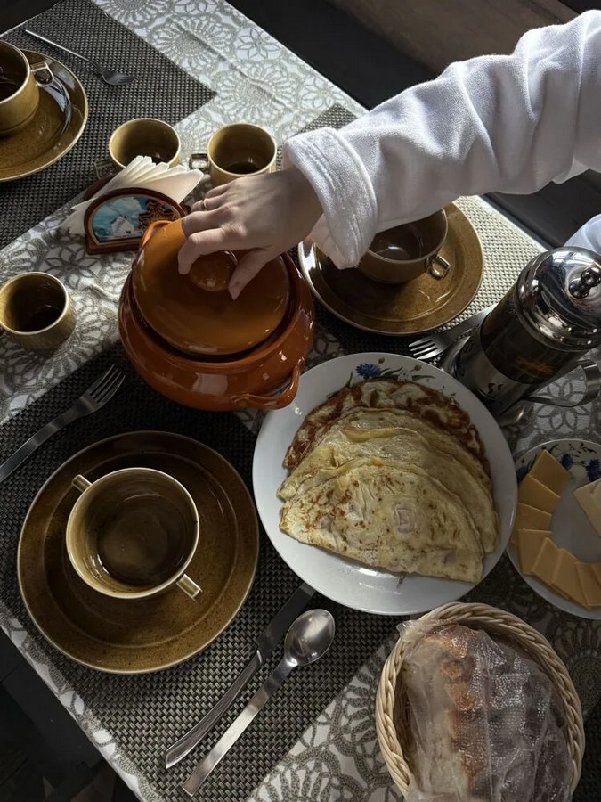 — Да, пока еще есть свободные даты. Сориентируются вас по жилью: у нас сдаются домики, не номера. Самый маленький домик рассчитан на 4 человек: если вас двое взрослых и один-двое детей — такой вариант подойдет идеально, — уверяют меня на другом конце провода. — В самом домике две комнаты, обеденная зона, банный комплекс, то есть санузел, душ и сухая финская сауна. Правда, воспользоваться ею можно в определенный промежуток времени. Также включено трехразовое питание: это не шведский стол, а завтрак-обед-ужин по меню комплекса в кафе. На завтрак, к примеру, — оладушки, яичница, кашки различные. В обед – борщ, котлетка куриная, пюре, овощной салатик. На ужин — драники, мясная нарезка, свежие овощи. Акцент на домашне-фермерские, экологически чистые продукты. Что касается развлечений, есть экскурсионная программа по нашим туристическим объектам.