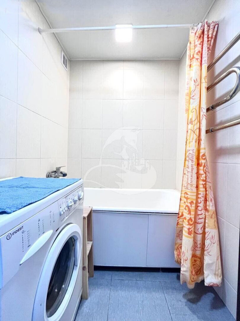 Санузел раздельный, в ванной комнате стоят ванная и стиральная машина.