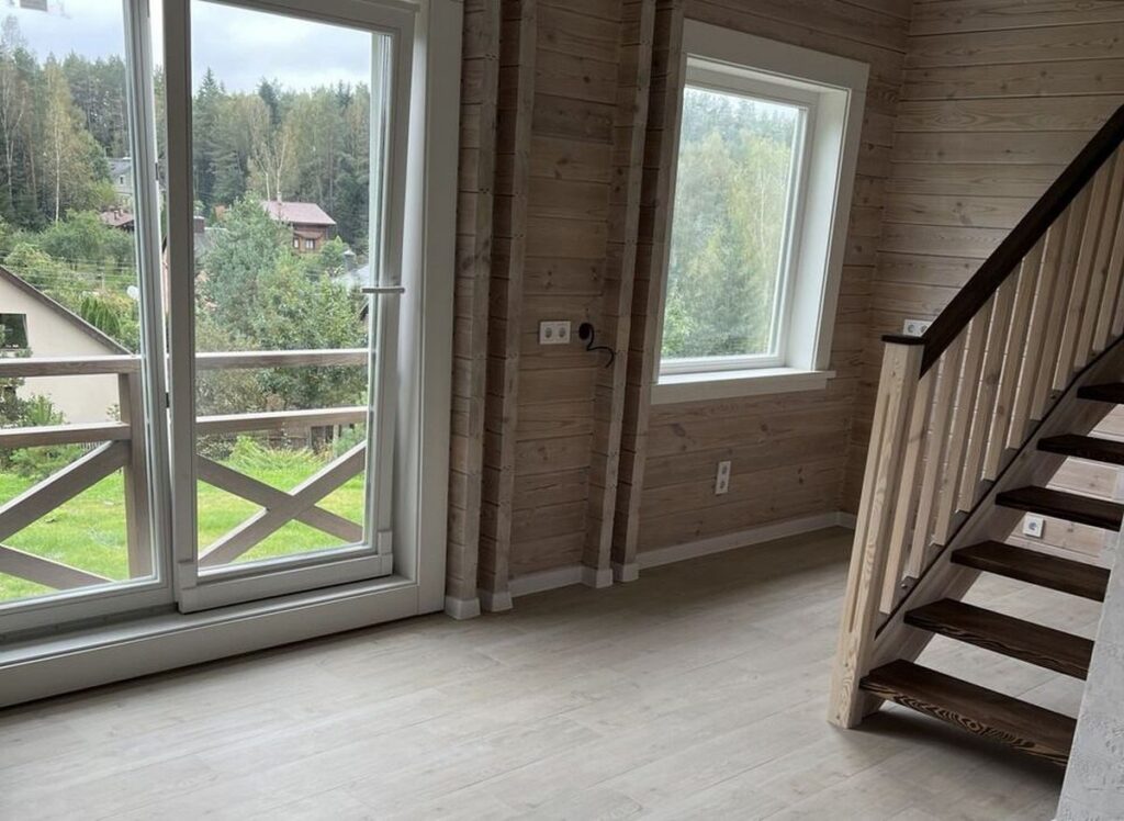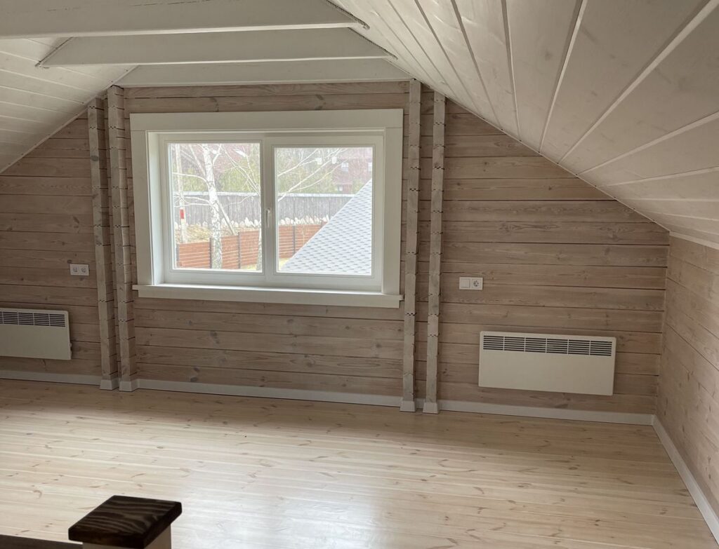 Дом построен на одной из возвышенностей в Раубичах. Строение возведено с использованием технологии двойного утепленного бруса. На крыше установлена финская металлочерепица. Современные деревянные стеклопакеты и металлические входные двери обеспечивают надежность и безопасность. Общая площадь дома составляет 88 квадратных метров, и он имеет три уровня: теплый цокольный этаж, первый этаж и уютную жилую мансарду.