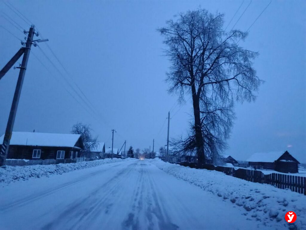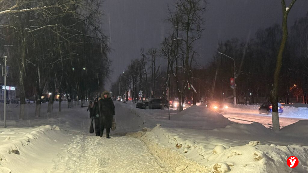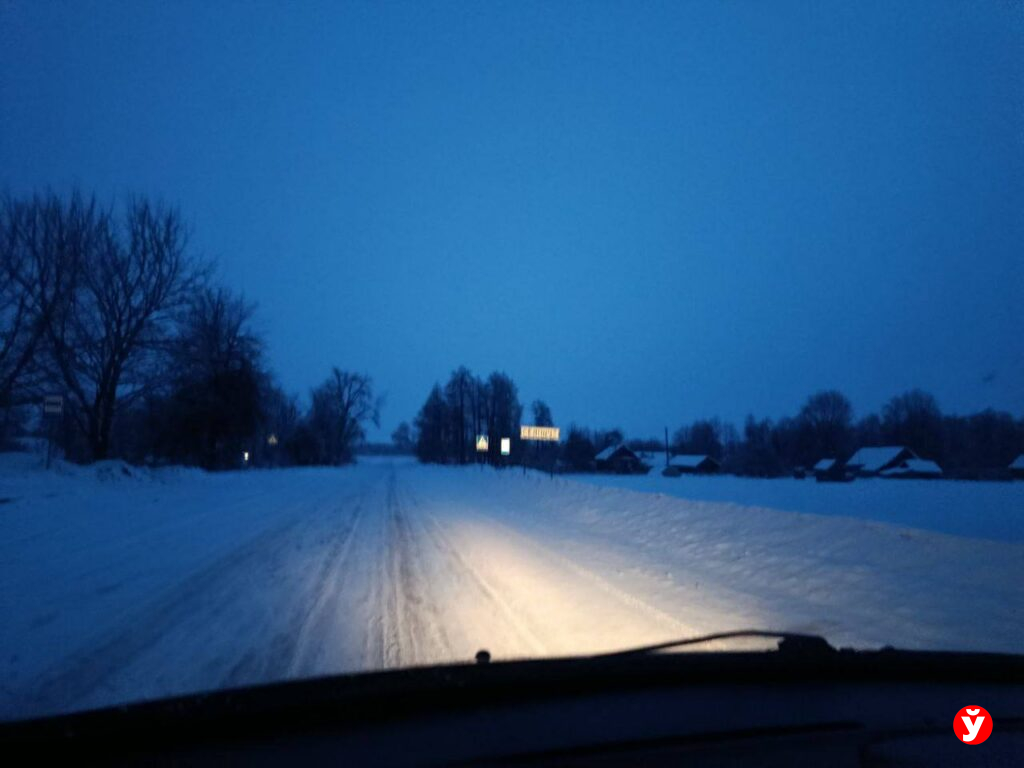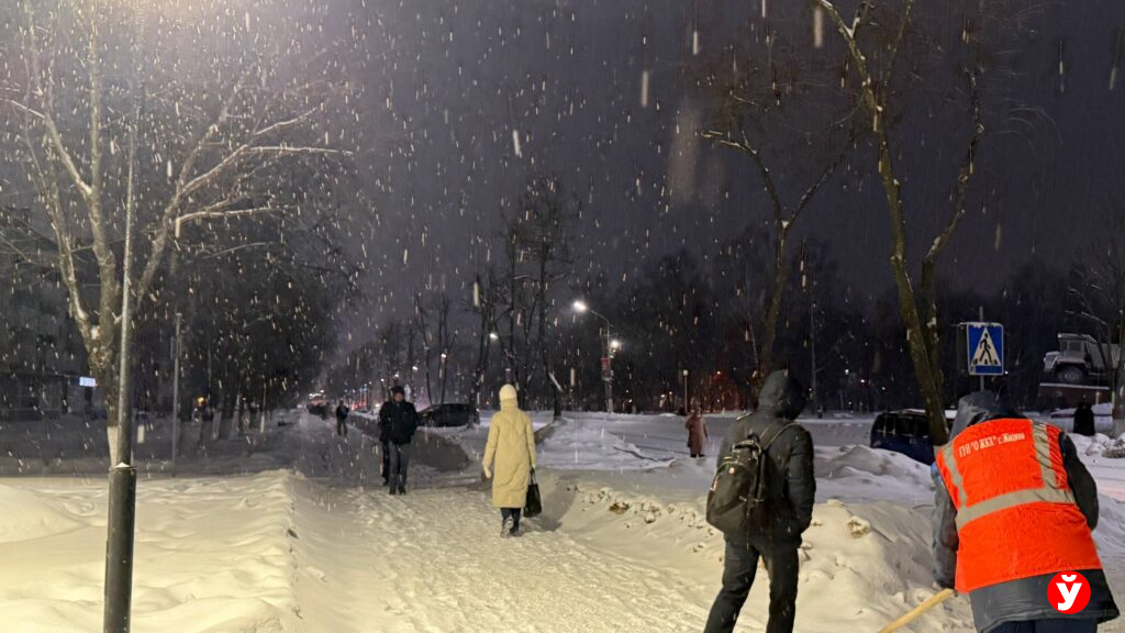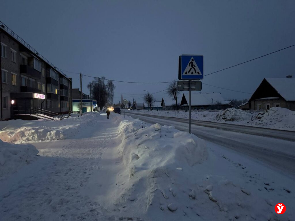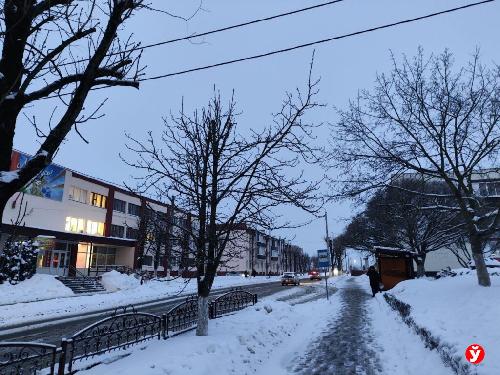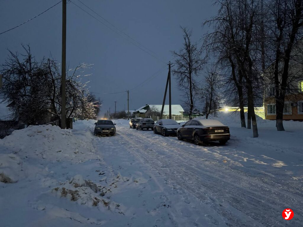 В Смолевичах утром 5 февраля чуть раньше отключили фонари, но освещения достаточно от фар машин, фонарей над подъездами и снега.