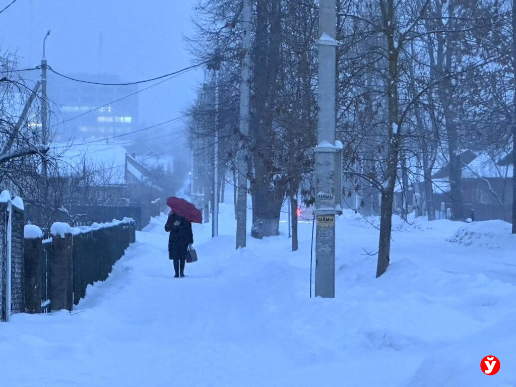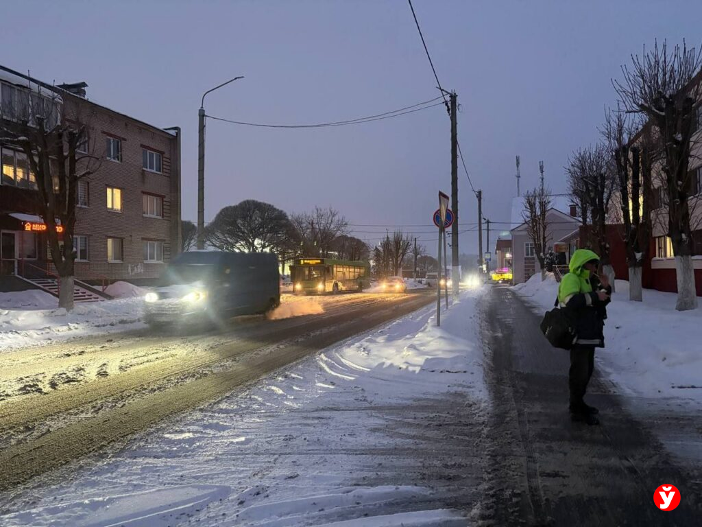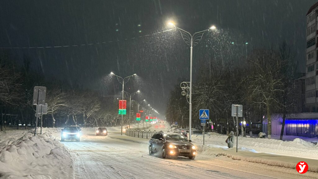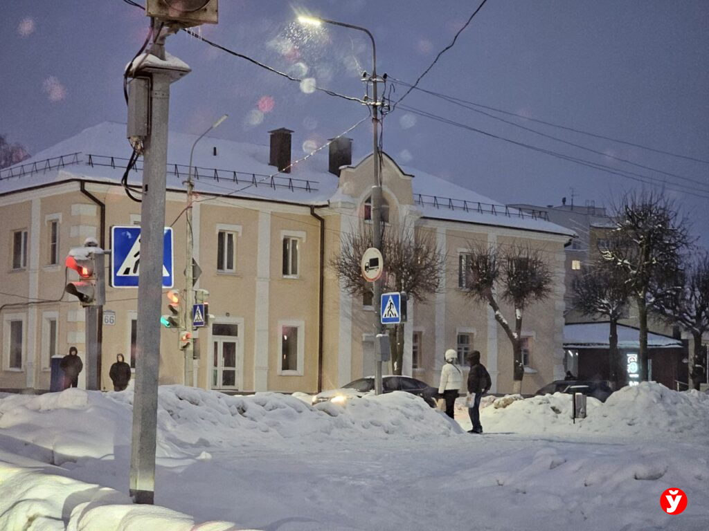 Наблюдаем: в это утро фонари в Борисове выключились, когда на улице уже было достаточно светло. Несмотря на это, природа внесла свои коррективы: утро встретило горожан густым снегопадом.