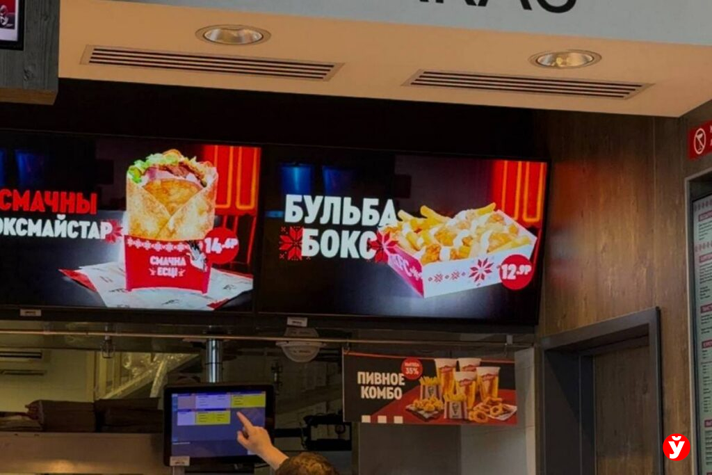 Среди них — бургер «Сакавіты» с драником, беконом и сметанно-грибным соусом, драники с грибным соусом, «Бульба-бокс» с куриными байтсами, «Боксмайстар Смачны» с драником и тем же фирменным соусом, а также «Дабл Чыкен па-беларуску».