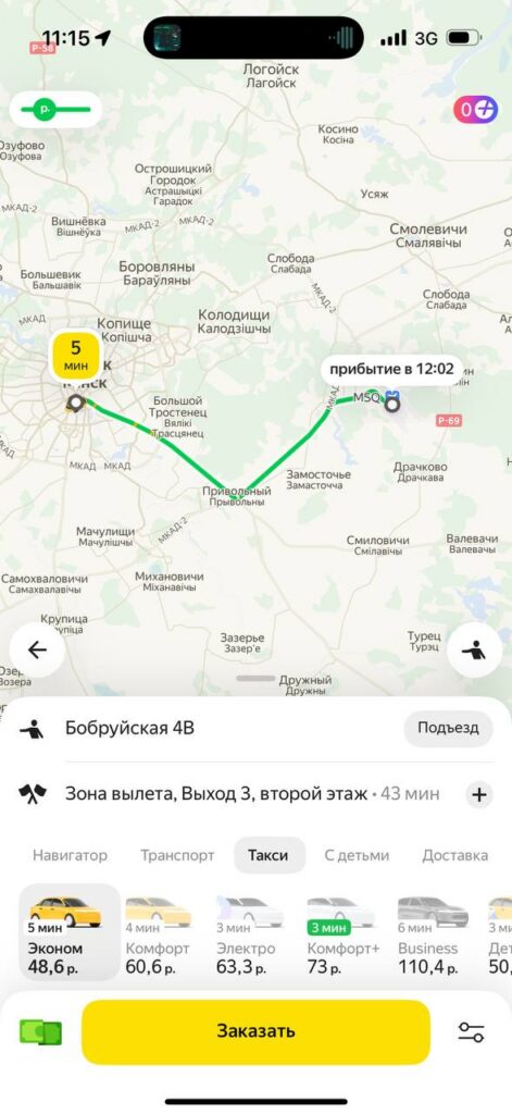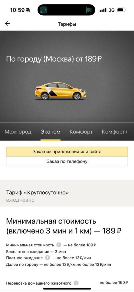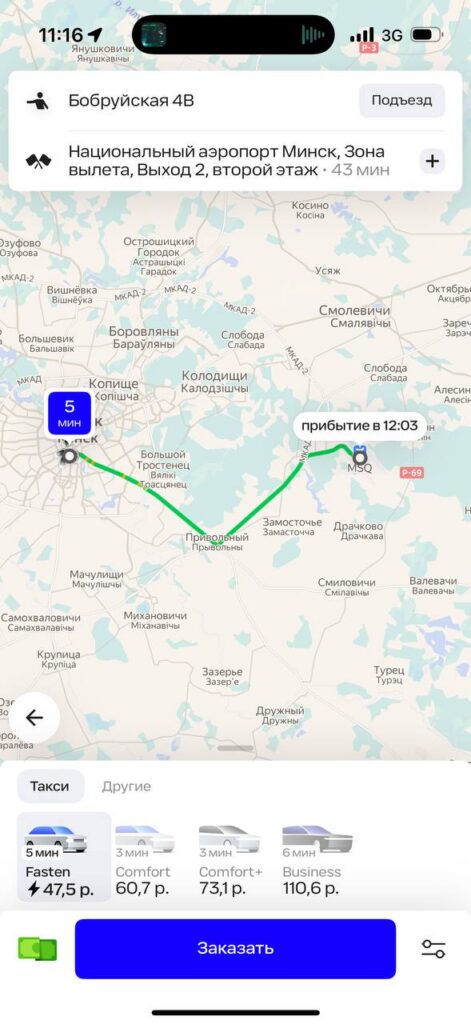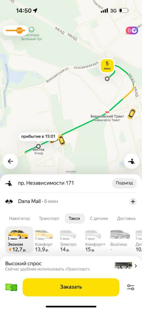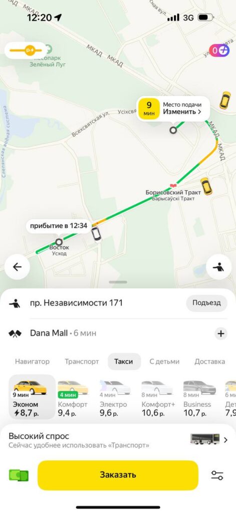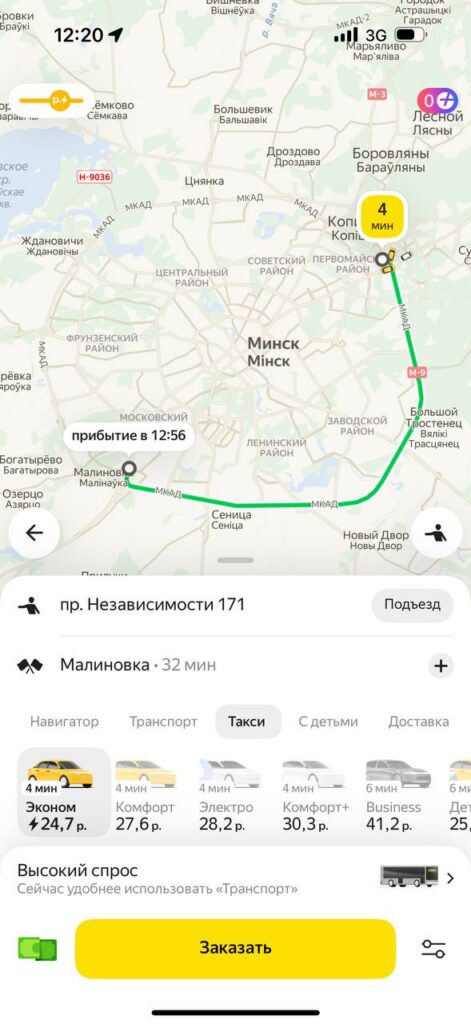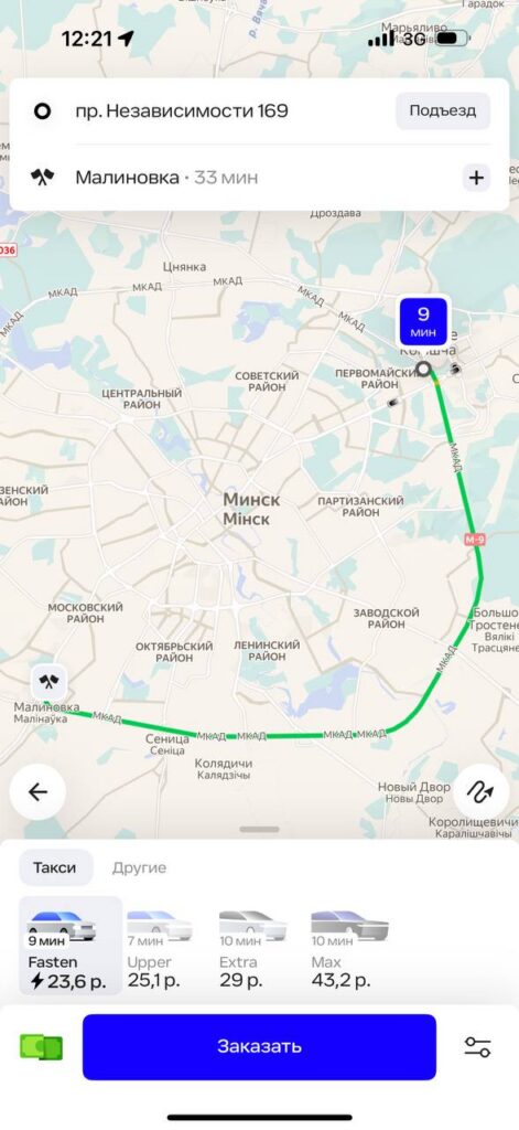 В приложении «Яндекс Go» стоимость тарифа «Эконом» в Минске начинается от 2,7 рубля, в нее включено такое же время в пути и километраж, как у Fasten. Разница в 13 копеек не критичная, но все же есть. Каждый последующий километр обойдется не более чем в 0,55 рублей, минута пути – не более чем в 0,18 рублей.