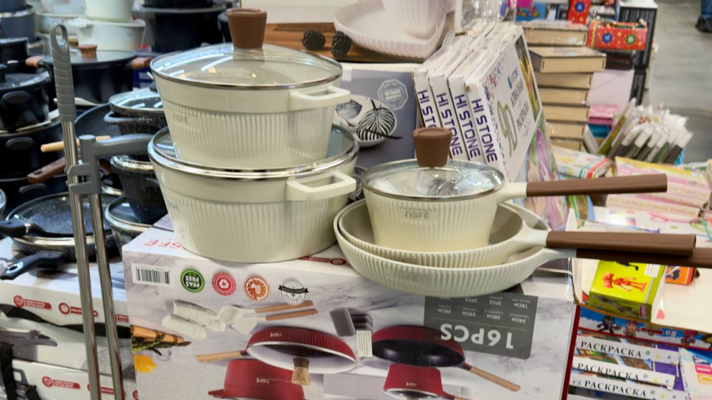 В набор кухонной посуды из 16 предметов, стоимостью 245 рублей, входят кастрюли, сковороды, ковш и сотейник, что позволяет готовить самые разные блюда. Такой набор может стать хорошим подарком для семьи, новоселов или тех, кто любит готовить.