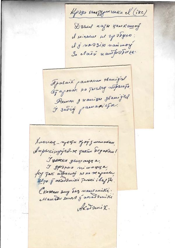 В жизни Кондрат Крапива был человеком с чувством юмора, которое проявлял не только в книгах. В литературных кругах ходили его эпиграммы. Иногда острые, иногда ироничные, они редко подписывались полным именем. Чаще всего стояло скромно: «Акадэмік».