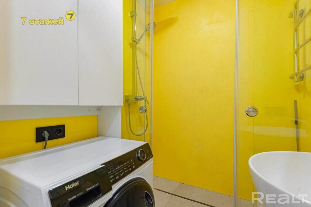 Ванная комната и санузел оформлены в ярком желтом цвете, что создает приятный контраст.