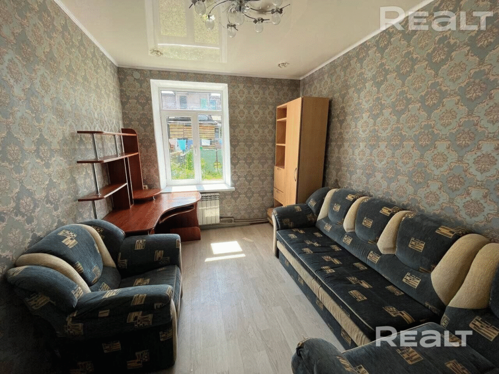 Квартира площадью около 40 м² находится на втором этаже трёхэтажного кирпичного дома и представляет собой двухкомнатное жильё с раздельными комнатами. Жилая площадь — 35 м². Внутри выполнен обычный ремонт, есть базовая мебель и необходимые удобства, включая холодильник, плиту и телефон. Санузел совмещён, есть балкон.