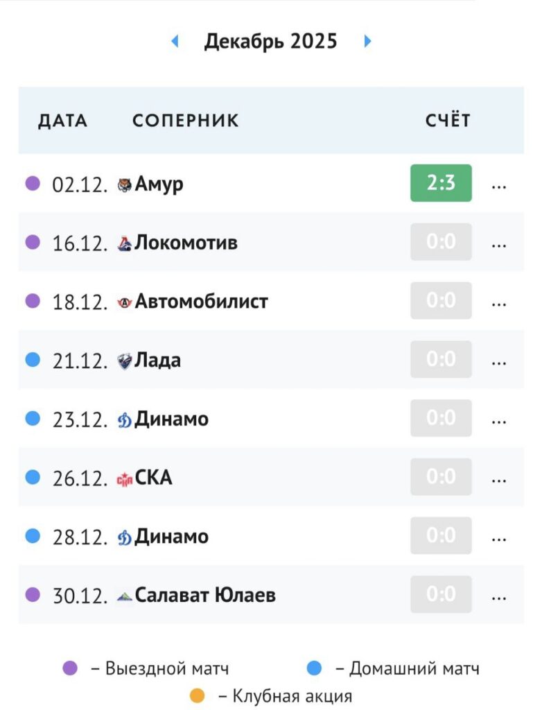 Ближайшая встреча состоится на выезде. Минчане будут бороться с «Локомотивом» 16 декабря. 18-го числа белорусы заедут в гости к «Автомобилисту», а уже 21-го примут лузера таблицы — «Ладу». Всего же в декабре столичное «Динамо» проведет семь игр: 3 в гостях и 4 дома. Последняя состоится 30 декабря.
