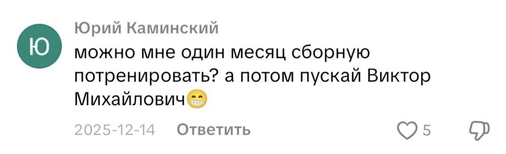Ни для кого не секрет, что наш народ очень острый на язык. На просторах TiKTok сразу же нашлись подколы и «уколы». «Ну, какой с него тренер», — судя по всему, берется за голову, один из пользователей. Нашлись и те, кто готов на месяц другой самостоятельно подтянуть команду до уровня Аргентины. И как же, не упомянуть Президента.