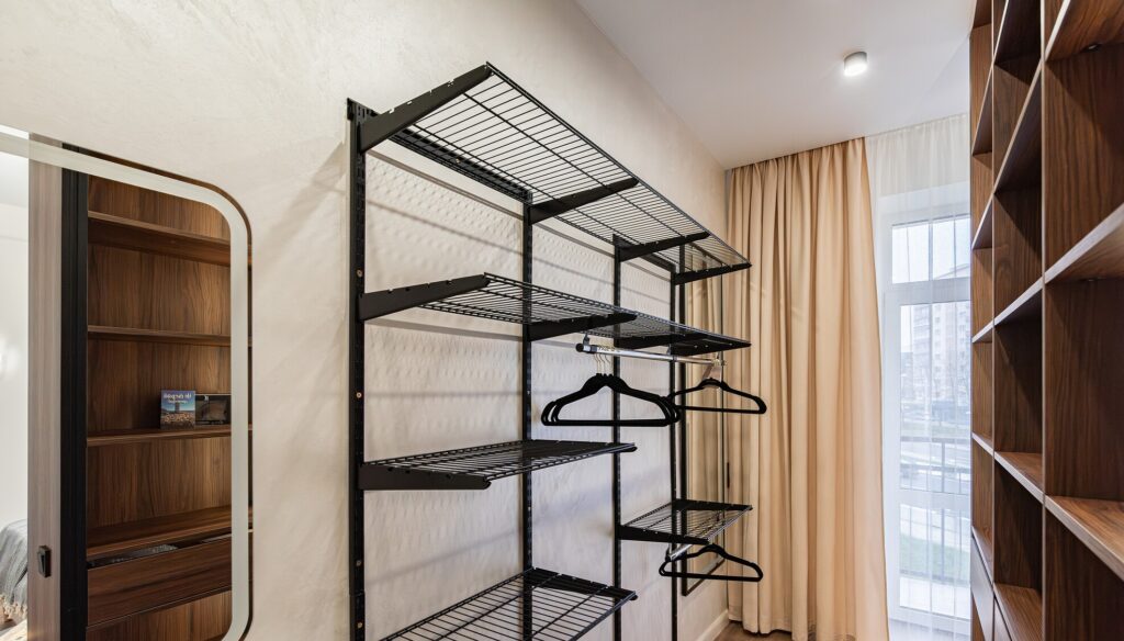 Квартира также имеет выход на балкон, с которого открывается живописный вид на окрестности. Кроме того, в квартире предусмотрена гардеробная с разнообразными системами хранения.