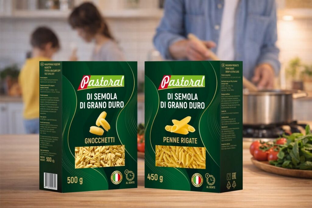 Итальянские новинки в картонной коробке. Теперь в фирменных картонных коробках можно найти не только классические спагетти. Комбинат представил две новые изысканные формы: «Ньокетти» — короткие, вогнутые макароны, идеальные для густых сливочных соусов, «Пенне ригате» — короткие перья с ребристой поверхностью, отлично удерживающие соусы.