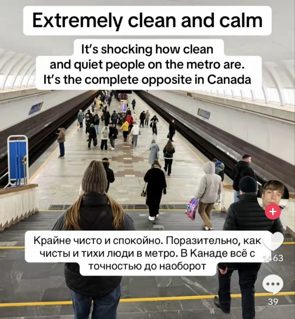 «Крайне чисто и спокойно. Поразительно, как чисты и тихи люди в метро. В Канаде все с точностью наоборот», — подписал турист первую фотографию своего ролика.
