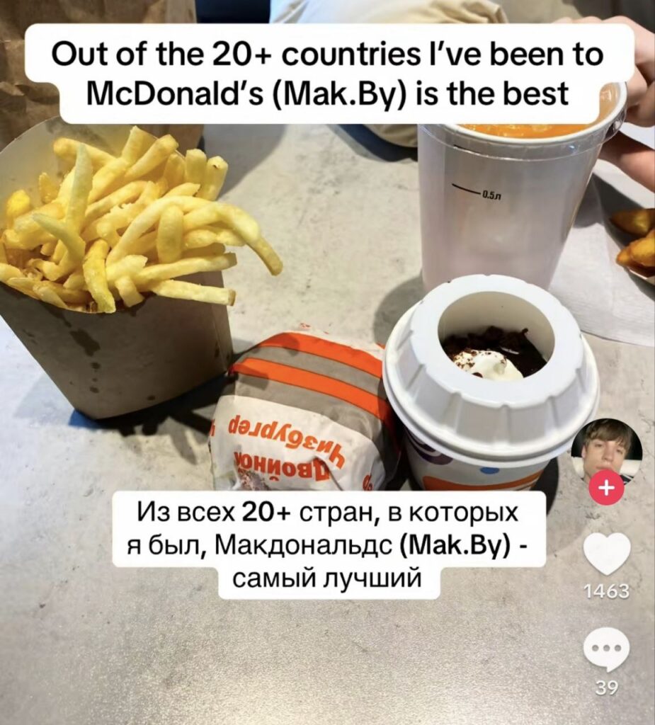 После ухода американского бренда из страны Беларусь сумела сохранить рабочие места и переделала исходник под свое видение. Стоит сказать, получилось вкуснее и разнообразнее. Как отметил автор, из ресторанов этой сети в 20+ странах самой аппетитной оказалась белорусская версия. К слову, несмотря на то, что подобные точки у нас работают давновато, очереди собираются по сей день. Ценовая политика приемлемая, а бонусы и скидки присутствуют на постоянной основе.
