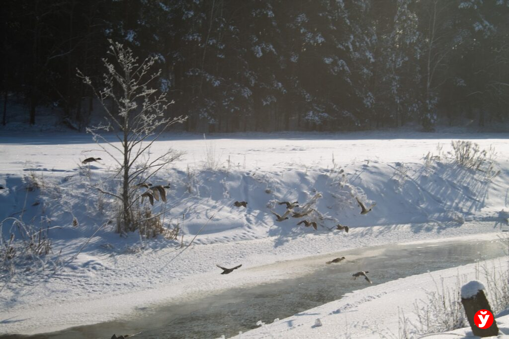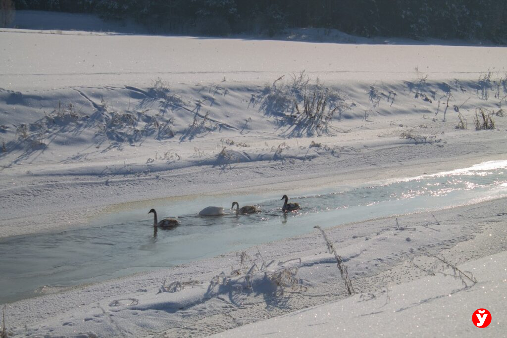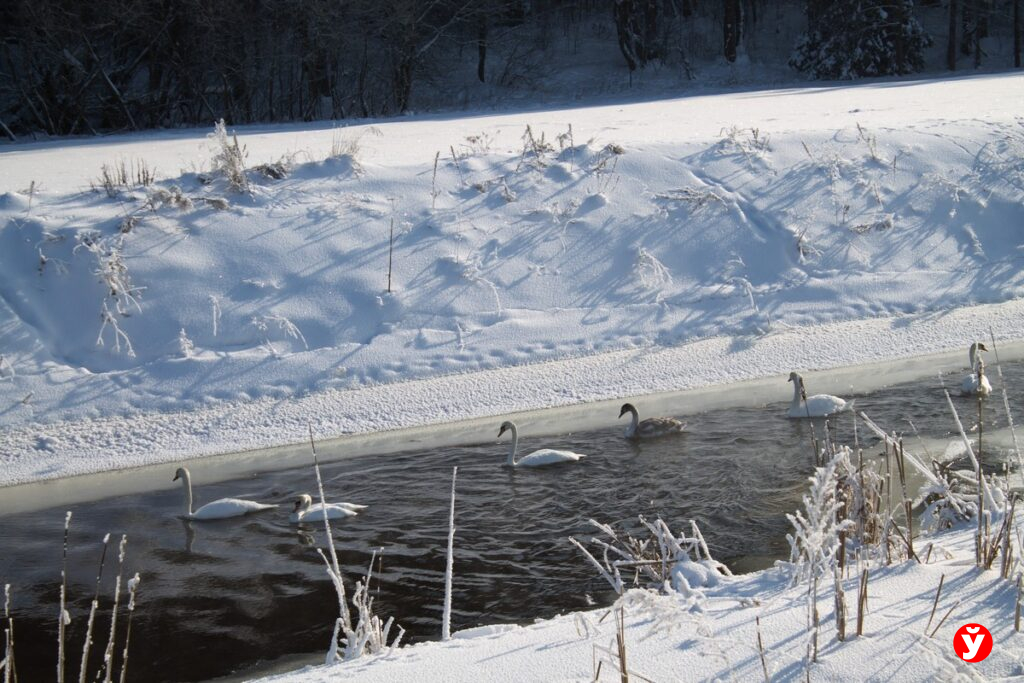 Логойщина — удивительное место и природа доказывает нам это красноречиво в очередной раз. На реке Цна в Логойском районе совместную зимовку устроили лебеди и утки. То, как они облюбовали незамерзающие части водоема посмотрел корреспондент «Минской правды».