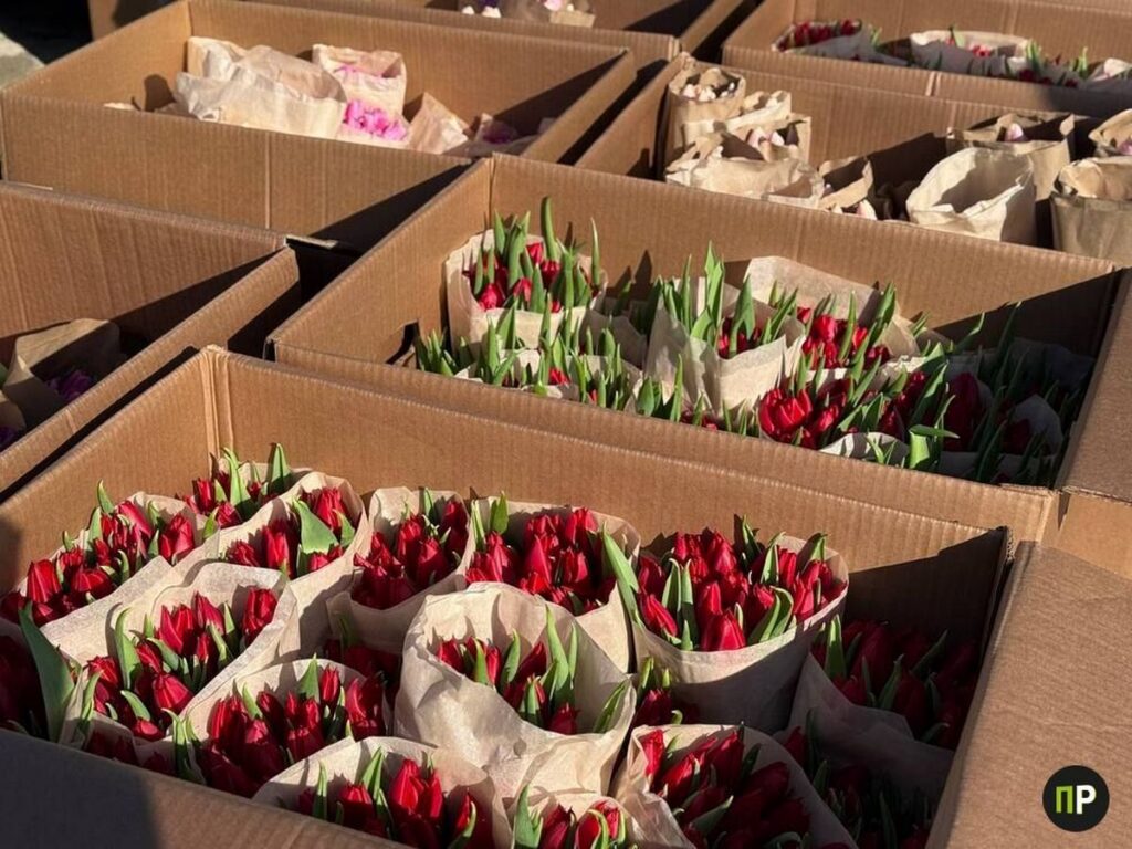 — Приехали с другом купить цветов всем: друзьям, бабушкам, тётям, родственницам, девушкам, — улыбается он. — Сколько покупаем? Тюльпанов, наверное, уже в районе двухсот штук набрали. Восемь букетов… пока что. Возьмём ещё.