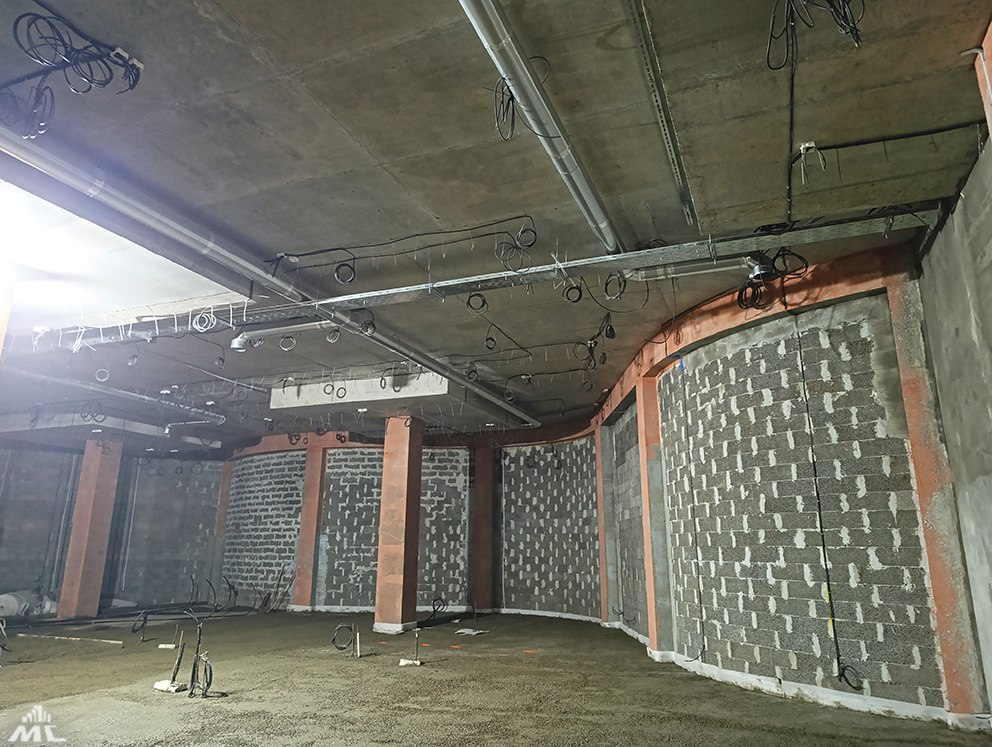 Внутри ведутся каменочные и штукатурные работы, черновой электромонтаж и сантехника, а также стяжки полов. В октябре планируется установить все три эскалатора.