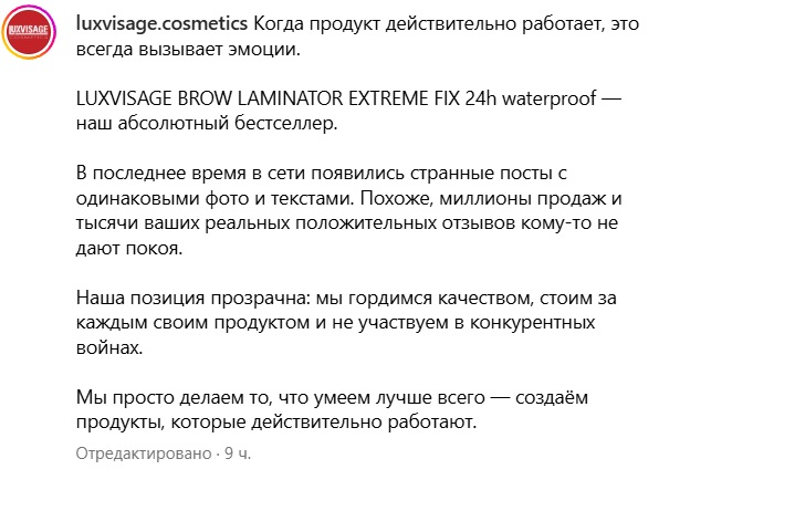 На странице в Instаgram косметического бренда появился комментарий к ситуации.