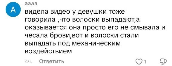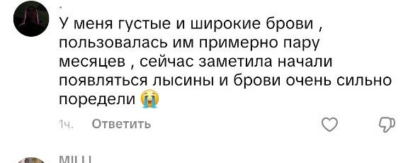 Одна из блогеров, которая ведет обзоры косметики на своей странице, рассказала о средстве для бровей и отметила, что лично ей продукт понравился. Но после комментариев некоторых девушек, что после геля стали выпадать брови, она сравнила свои результаты и заметила, что волосков стало меньше.