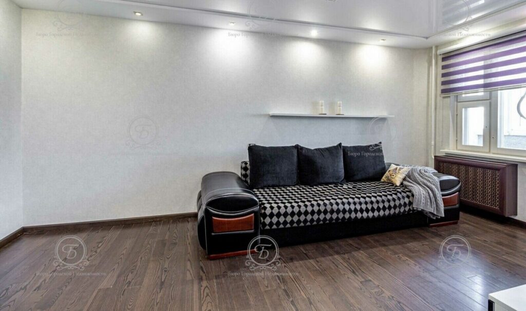 Из мебели в жилой зоне имеются удобный раскладной диван в гостиной, кожаный диван, встроенные шкафы и системы хранения.