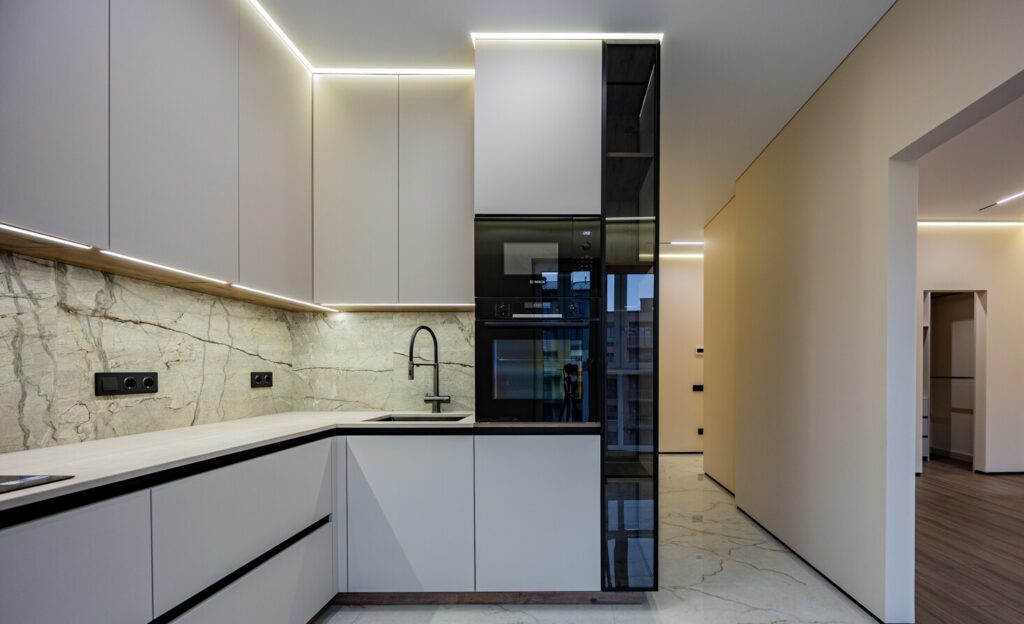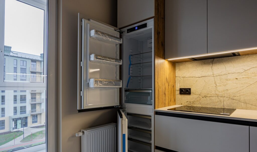 Для обеспечения комфортного климата в квартире предусмотрены теплые полы и кондиционер. Кухня в квартире оборудована столешницей из натурального камня и полностью готова к переезду новых жильцов. В ней уже установлена вся необходимая техника: индукционная плита, вытяжка, встроенная микроволновая печь, посудомоечная машина и холодильник. Все устройства находятся на гарантии, что добавляет уверенности в их надежности.