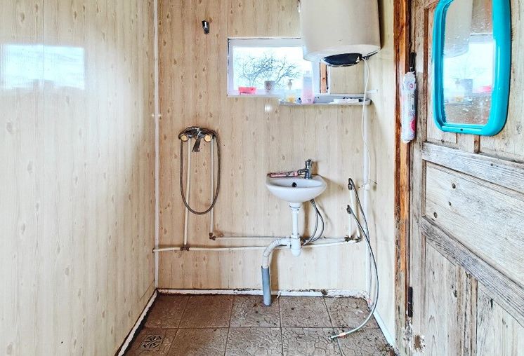 Водоснабжение в доме организовано — вода подается насосом из колодца, расположенного во дворе. Удобства находятся на улице, но при желании можно оборудовать теплый санузел и внутри деревянной хозяйственной пристройки. В хозяйстве имеется и баня — деревянная, с печкой на дровах, где предусмотрена помывочная с горячей водой (из бойлера). Также в бане есть комната отдыха с большой двуспальной кроватью.