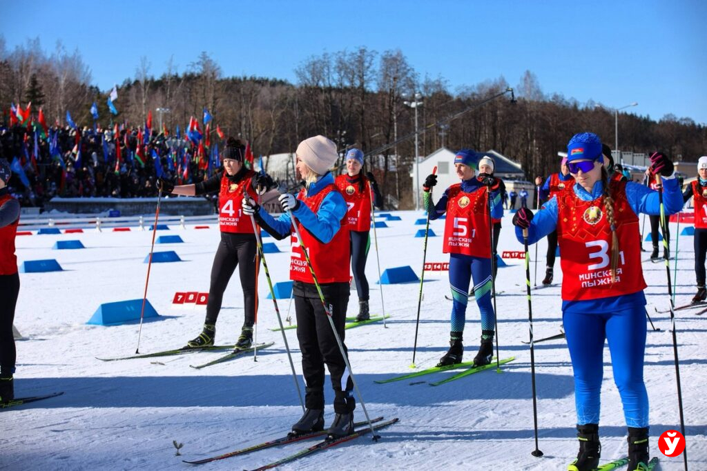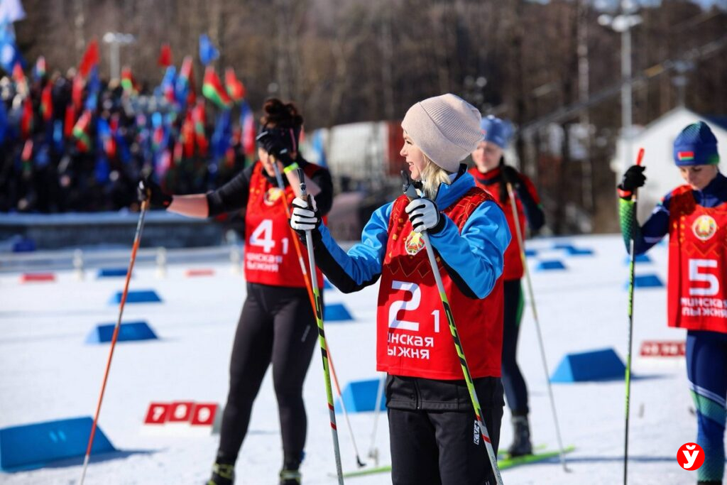 И снова на старте — прекрасные женщины. Улыбки, цветы, искренние эмоции и поддержка болельщиков. В этот день лыжная трасса наполнилась не только духом соперничества, но и настоящим праздничным настроением. Самые красивые, энергичные и спортивные девушки вышли на старт, чтобы доказать: скорость, выносливость и командный характер — это тоже про белорусских девушек.