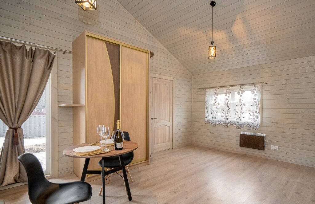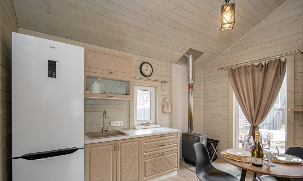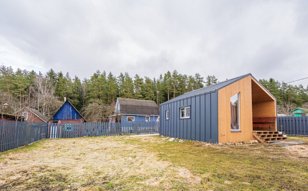 В живописном садоводческом товариществе, расположенном недалеко от Минского моря, выставлен на продажу миниатюрный каркасный дом. Этот домик привлекает внимание своей симпатичной архитектурой как снаружи, так и внутри. Он оборудован небольшим террасным пространством, где можно проводить время на свежем воздухе. Внутреннее убранство включает в себя функциональную кухню, укомплектованную всей необходимой мебелью и бытовой техникой, а также спальню.