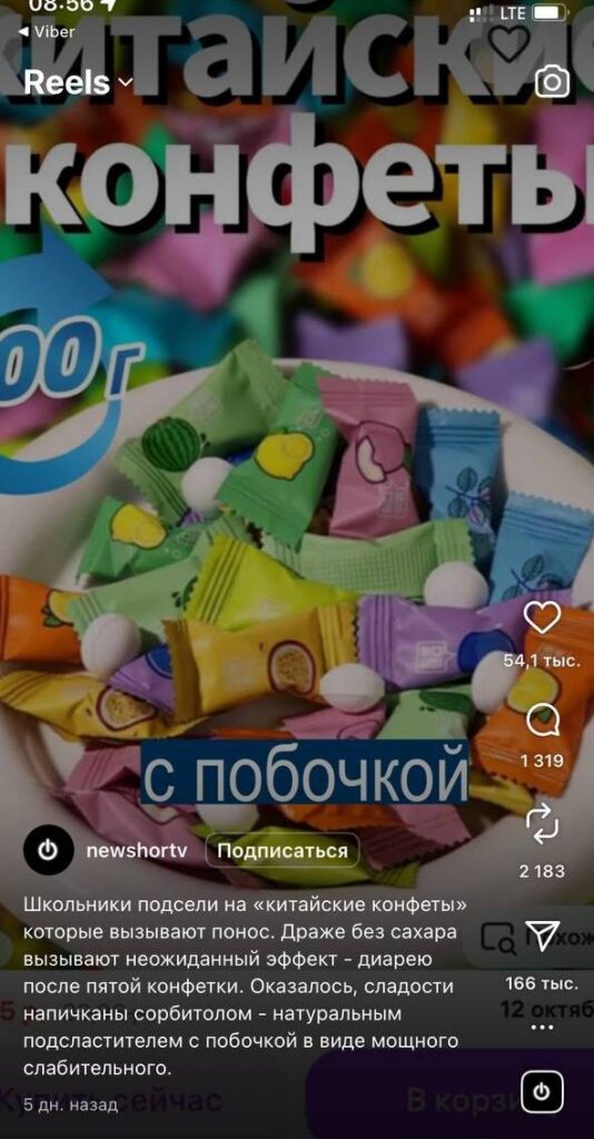 В сети гуляют видео о конфетах с популярного маркетплейса, вызывающих диарею. Речь идет о конфетах без сахара, в состав которых входит сорбит.