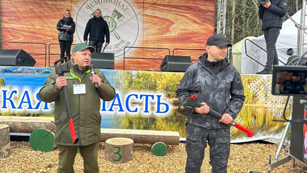 Торжественное завершение 4 Чемпионата по колке дров среди СМИ ознаменовалось не только награждением победителей, но и вручением символичных подарков почетным гостям.