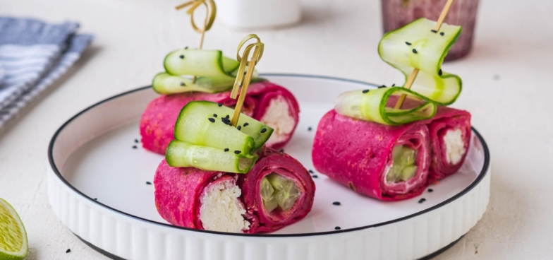 Яркий цвет в сочетании с зеленью огурцов создает потрясающий визуальный контраст. Блюдо отлично подходит для фуршета, легкого ужина или праздничного стола.