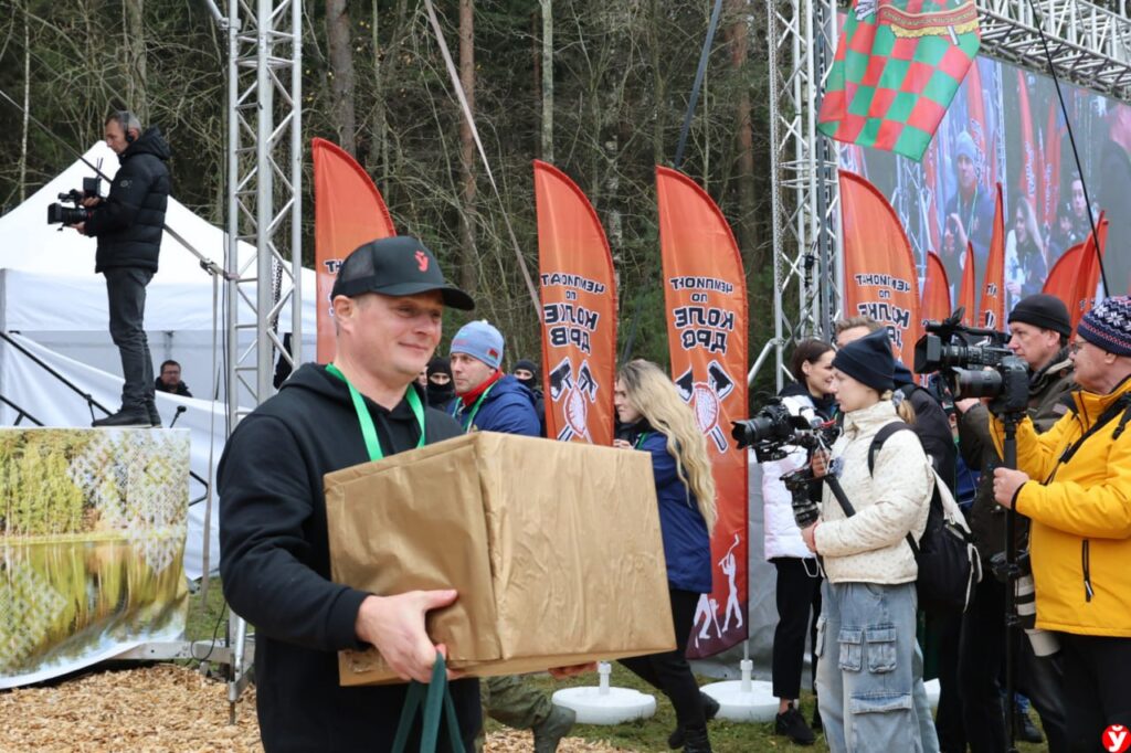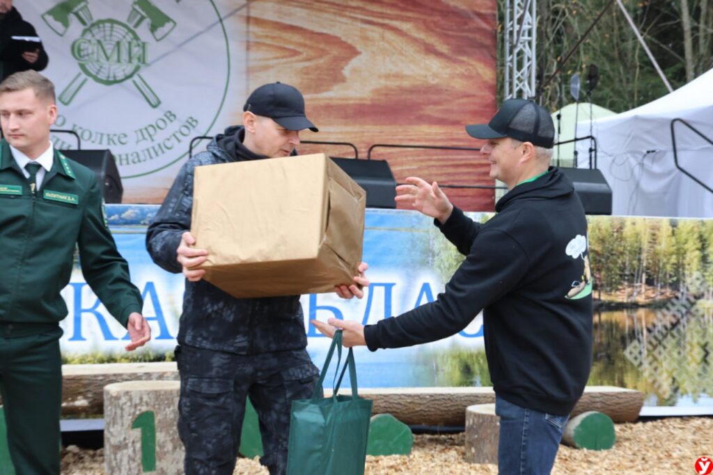 В самой престижной и зрелищной номинации «Колка дров «по-президентски» первое место занял Александр Добриян из телерадиокомпании «Гомель». Его результат стал примером точности и скорости.