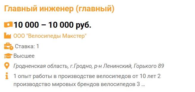 Вакансию разместило ООО «Велосипеды Макстер». Это резидент свободной экономической зоны «Гродноинвест», зарегистрированный в сентябре 2025 года.