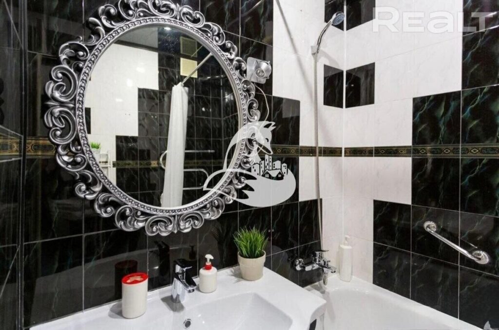 Квартира выглядит нетипично дорого для своей цены. Просторная гостиная с диваном, креслом, журнальным столиком и телевизором, уютная спальня с большой кроватью. Укомплектованная кухня, где помимо холодильника и плиты стоит стиральная машина. Санузел раздельный, в ванне суровый, но эстетичный дизайн в черно-белых сочетаниях.