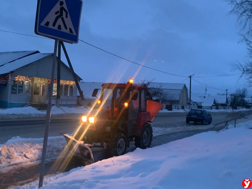 К уборке будет привлечено 8 единиц техники: 1 МАЗ с пескоразбрасывателем, 3 погрузчика «Амкодор» и 4 трактора.