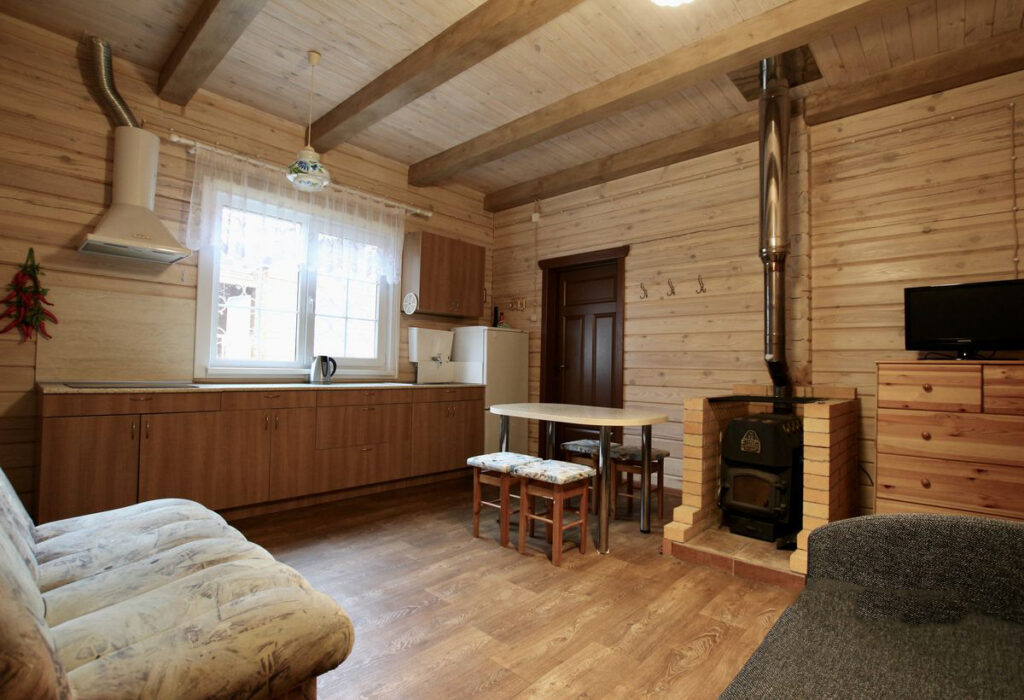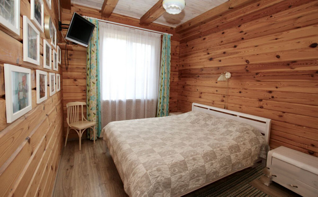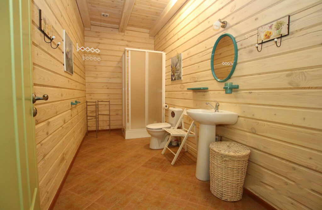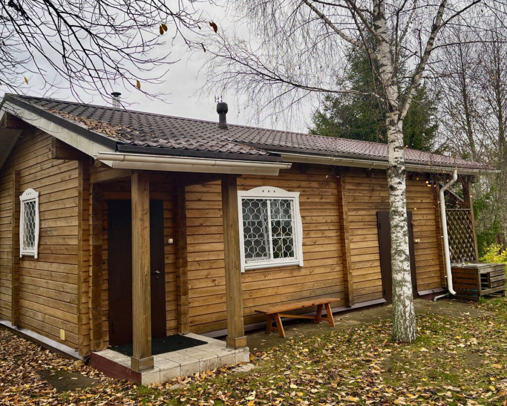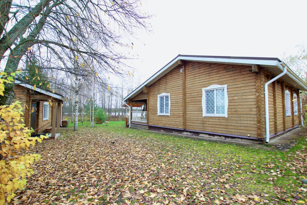На участке также имеется еще одна постройка из профилированного бруса — это баня, которая может использоваться как гостевой дом. Оба строения отапливаются каминами и электричеством. Вода подается из скважины, а канализация организована местным образом.