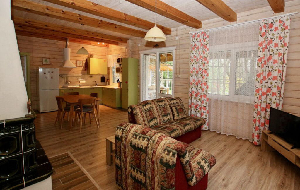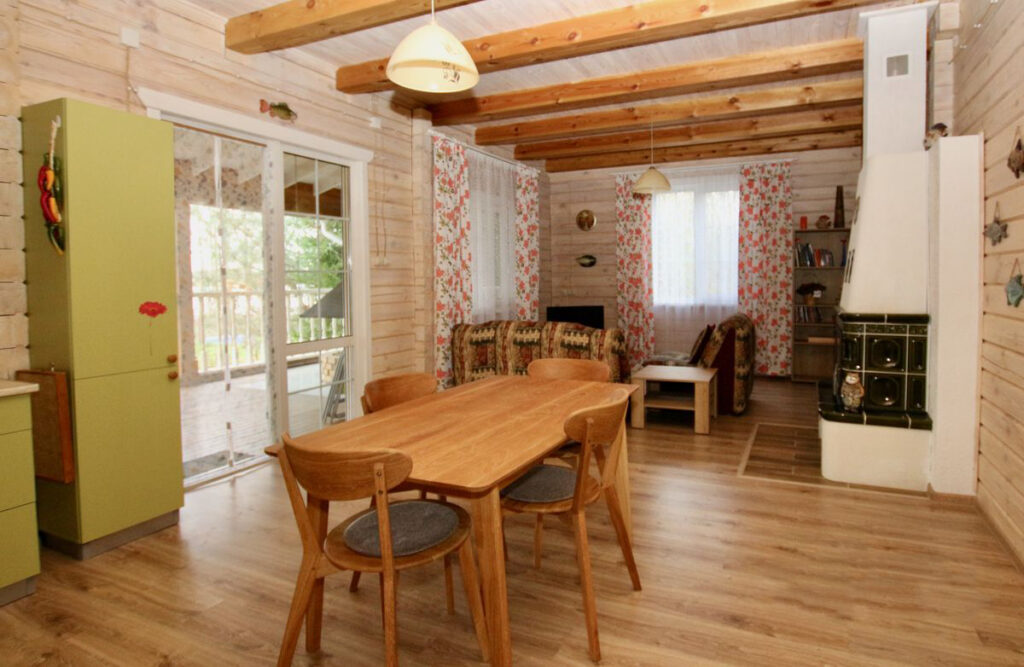 Участок, на котором находится усадьба, словно продолжение леса: здесь растут высокие сосны и березы. Сам поселок Мирный, в котором расположен дом, находится среди обширных лесных массивов на границе трех районов Витебской области: Лепельского, Ушачского и Докшицкого. Жилье находится недалеко от берега озера.