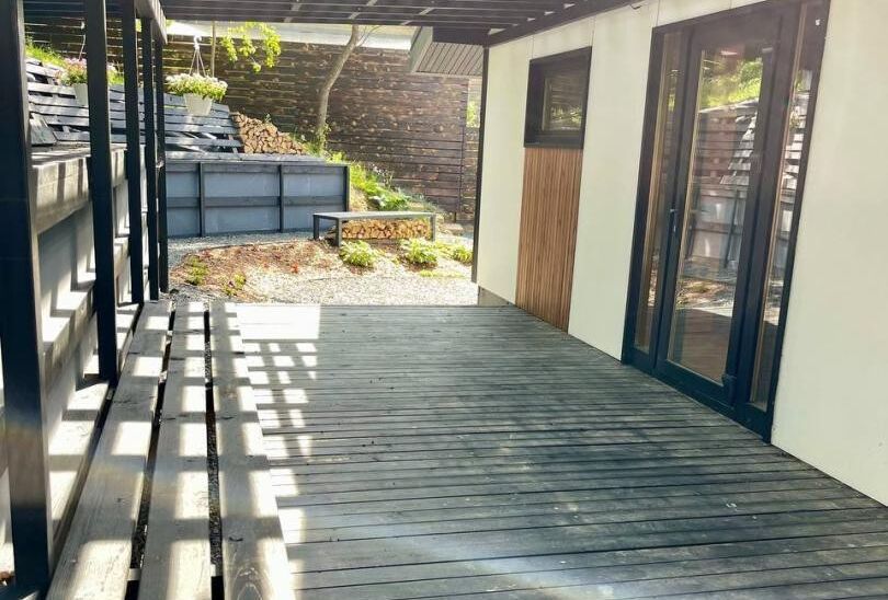 Просторная терраса площадью 22 квадратных метра станет отличным местом для времяпровождения на открытом воздухе.