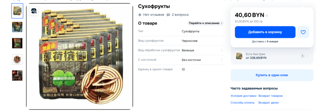 Ведомство направило запрос в Ассоциацию компаний интернет-торговли с требованием предотвратить продажу потенциально опасной продукции — бетельный орех не соответствует требованиям безопасности и может представлять угрозу для здоровья.