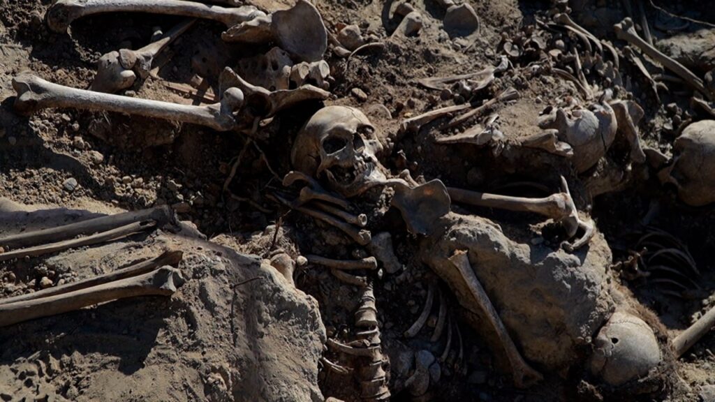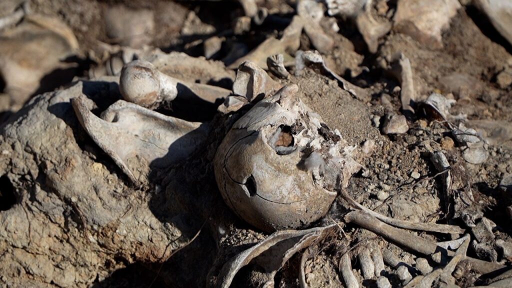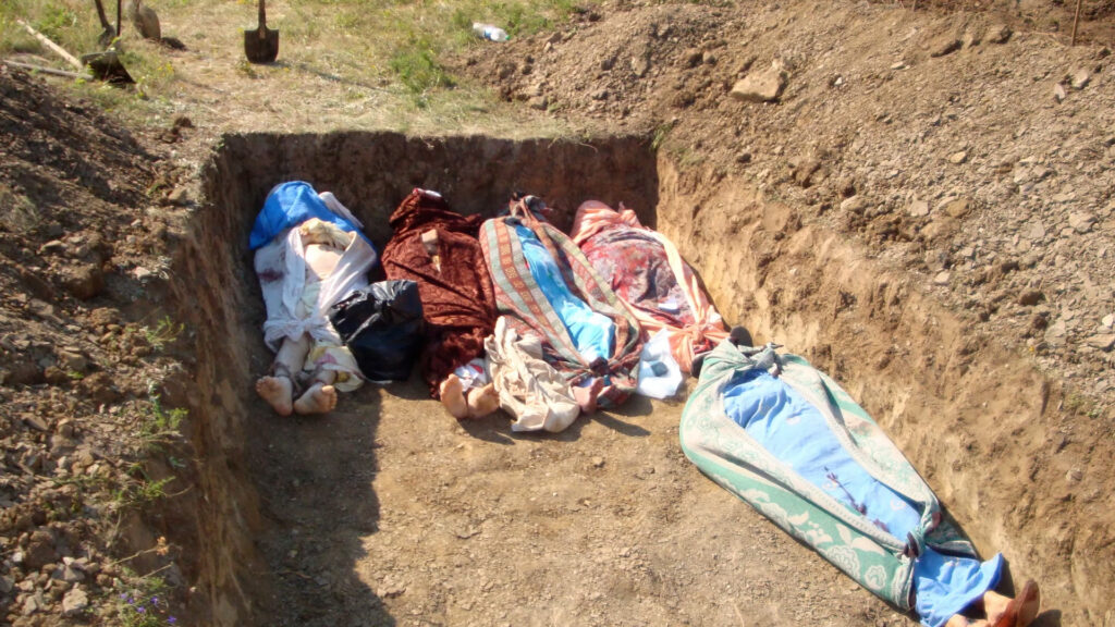 В этом же районе останки были обнаружены в 4-х сгоревших домах. Семьи в них расстреляли, а дома подожгли.