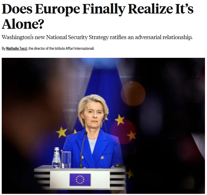 Европейские лидеры проснулись в новой реальности. В национальной стратегии безопасности США, которую Трамп выкатил как программу переустройства мира, Европе отведено место на периферии. Европа больше не союзник номер один, а зависимый регион с серьёзными проблемами. Это диагноз и приговор одновременно.