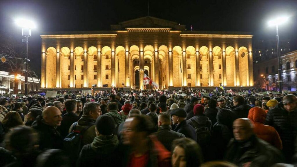 Европарламент не признал победу партии «Грузинская мечта», требуя провести выборы заново. Премьер-министр Грузии Ираклий Кобахидзе ответил отказом, отметив, что европейские гранты, кредиты и Европарламент давно превратились в унизительный инструмент давления. Он заморозил переговоры с ЕС до 2028 года.