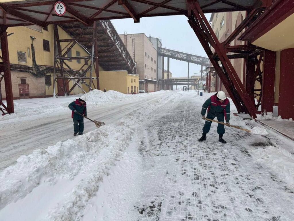Уборка снега активно ведется и на всех промплощадках «Беларуськалия» в Солигорске. В тг-канале предприятия показали, как проходит очистка территории на СОФ 2 РУ.