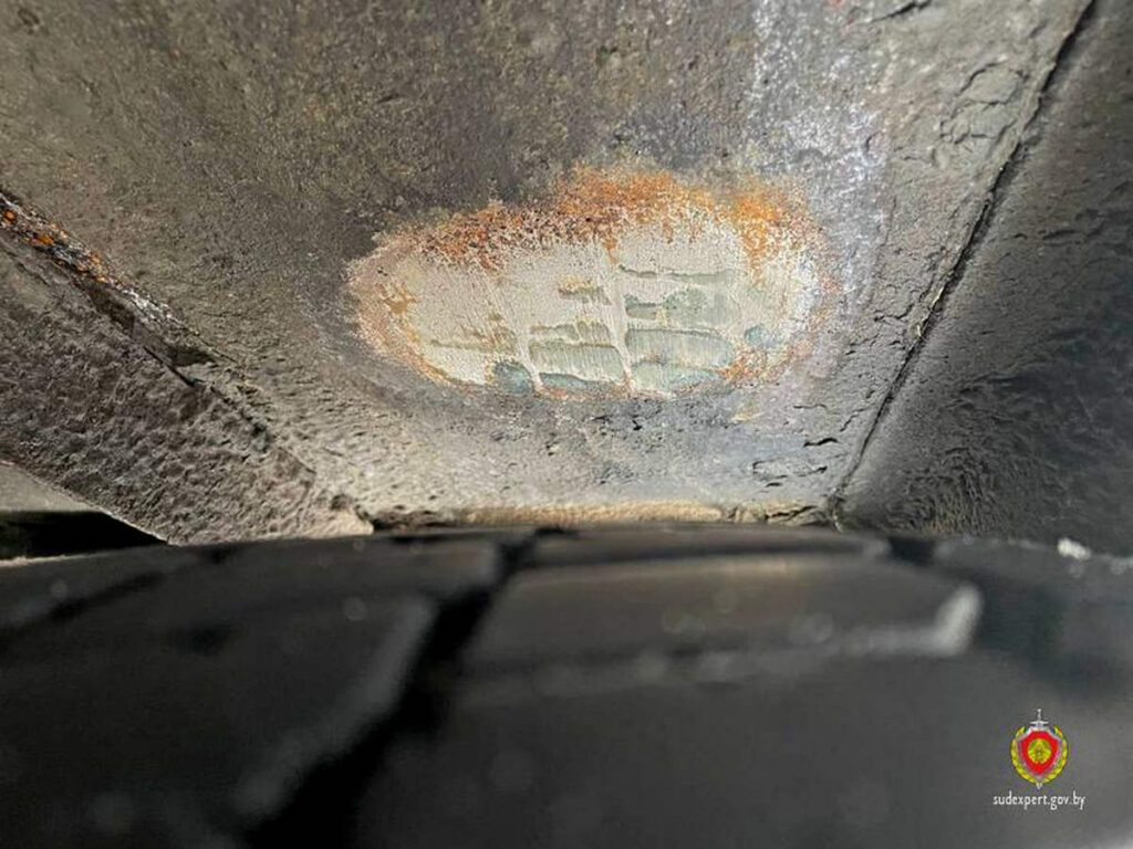 После расчистки грузового отсека судебный эксперт, осмотрев очаг пожара, обнаружил принципиально иную картину. Над колёсными нишами на металлических вставках напольного покрытия виднелись локальные следы механического износа в виде потёртостей — именно в зоне наибольших тепловых повреждений. Там же находилась техника, упакованная в картонные коробки.