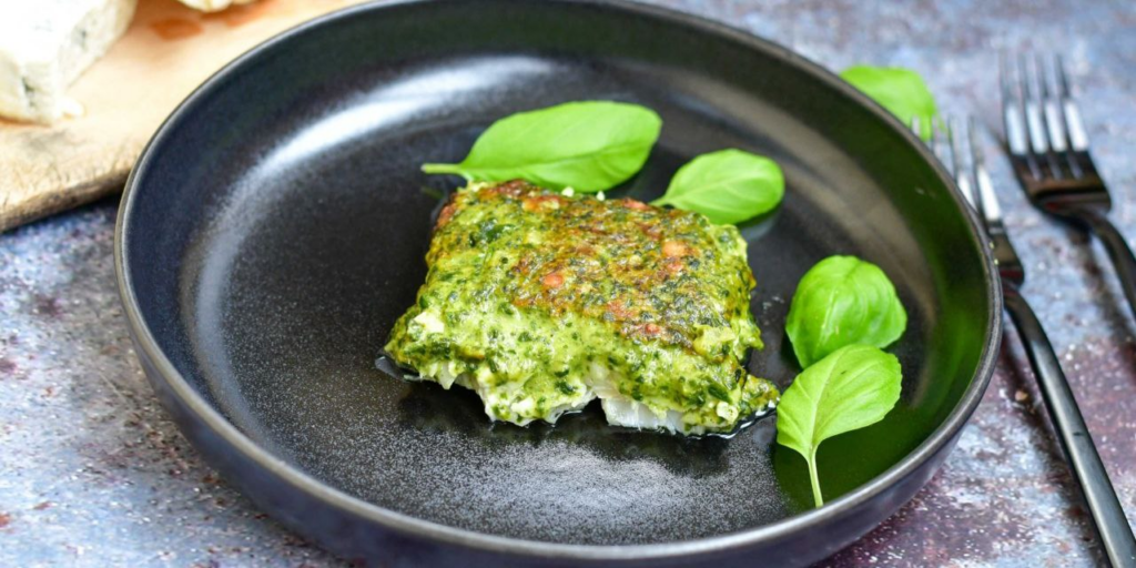 Зубатка, запеченная под слоем ярко-зеленой сырной массы, — это праздничное и при этом простое блюдо. Нежный вкус рыбы отлично дополняется пикантностью соуса на основе сметаны и шпината. Такое блюдо насытит, подарит полезные омега-кислоты и порадует своим видом.