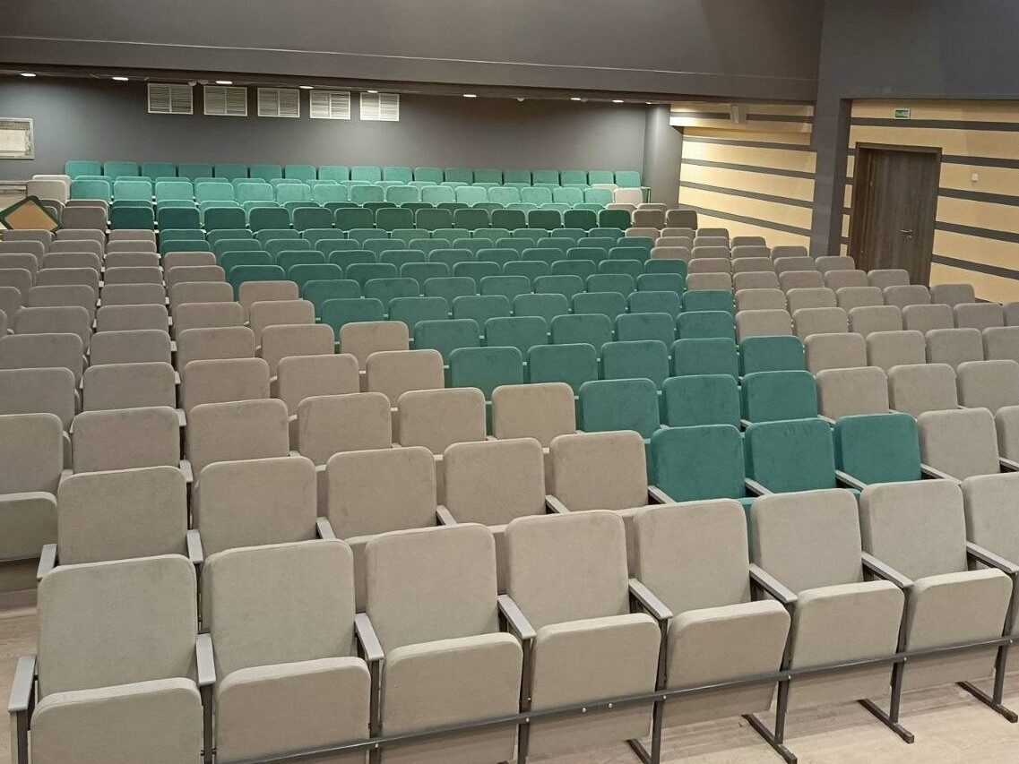 Строительно-монтажные работы полностью завершены. Сейчас на объекте продолжается сборка мебели, установка спортивного инвентаря и пуско-наладка оборудования. Генеральным подрядчиком выступил филиал СУ-13 стройтреста № 4.