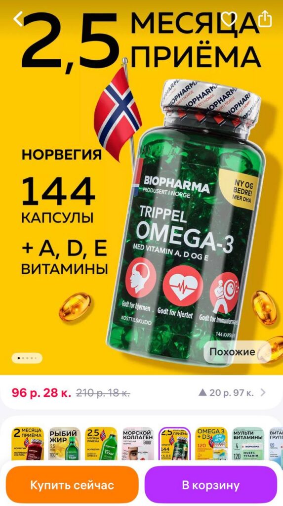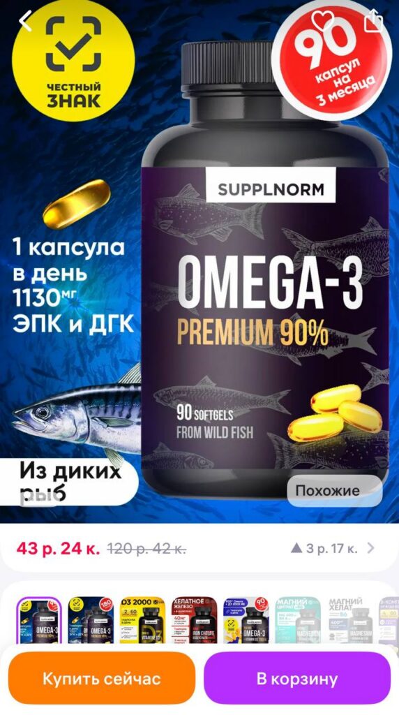 Шесть известных БАДов с омега-3 оказались некачественными — их продают на маркетплейсах