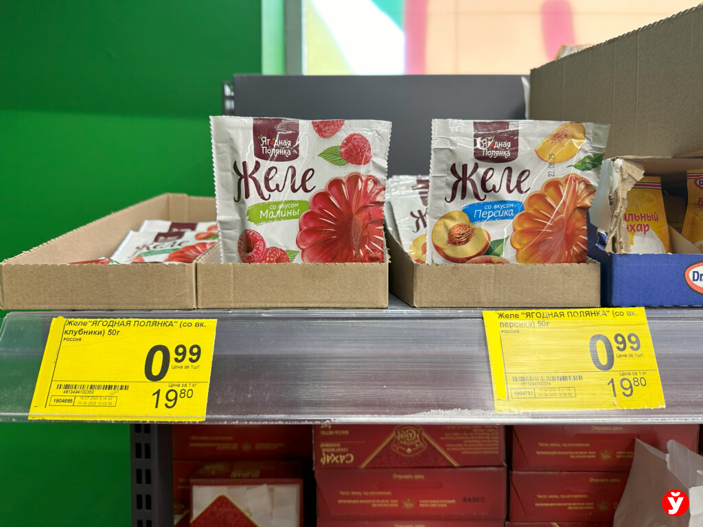 Для десерта идеально подойдет желе со вкусом персика или клубники. Стоит всего 99 копеек за 50 грамм.