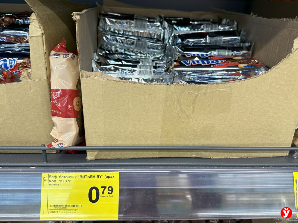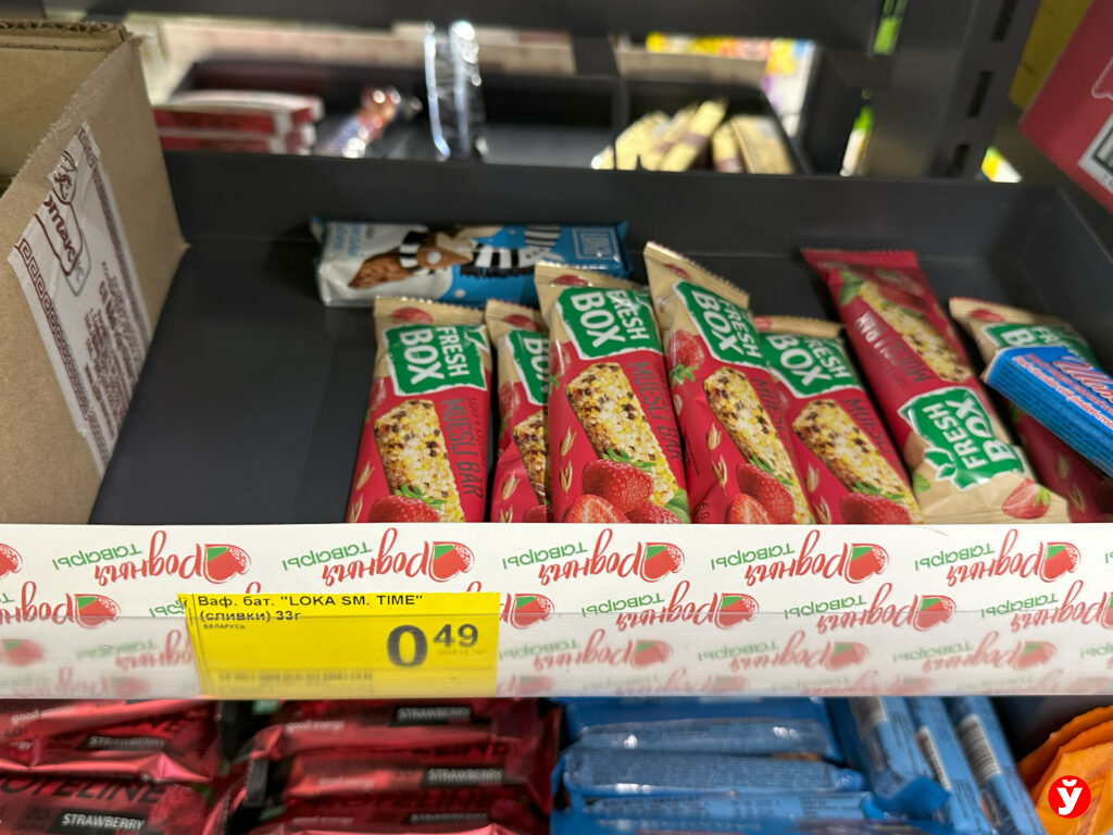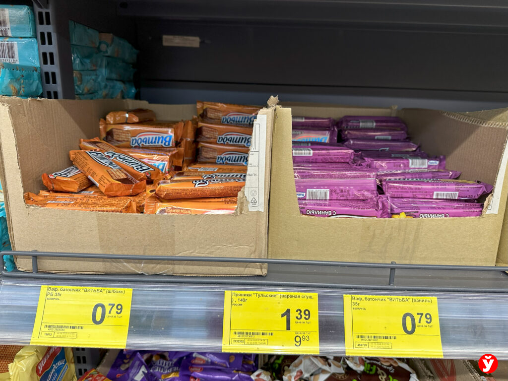 Начнем с вафельных батончиков — они продаются по 79 копеек за 35 грамм. Бывают с разными вкусами: шоколад, ваниль или арахис.