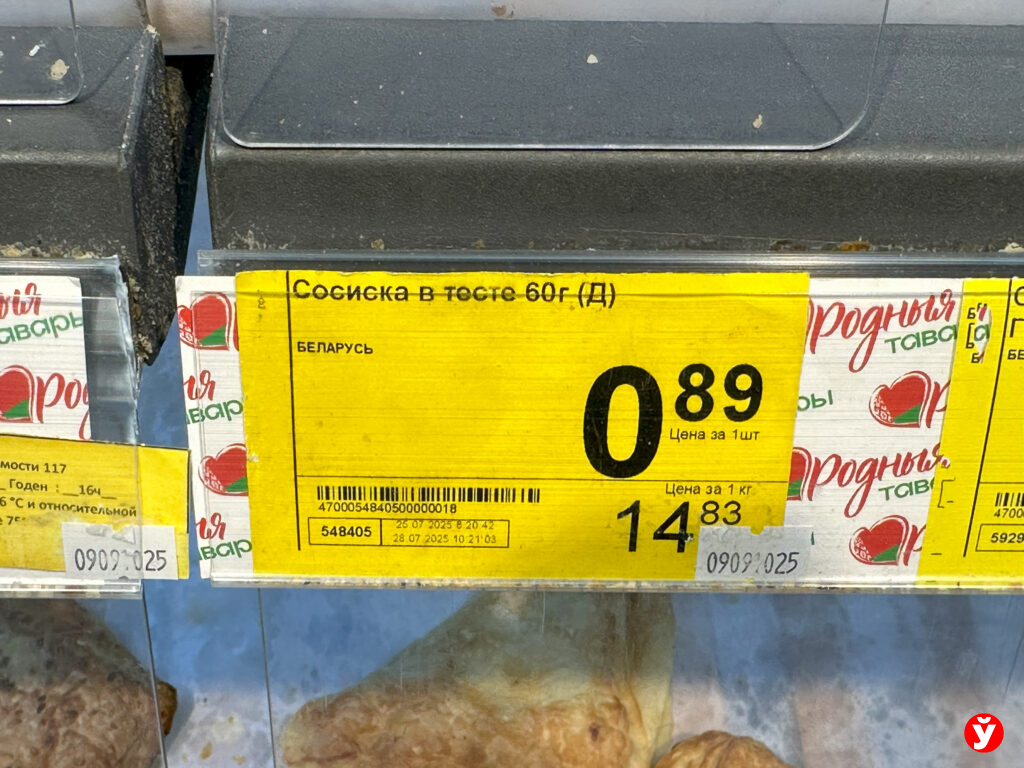 В булочном отделе можно найти сосиски в тесте по 89 копеек за штуку. К сожалению, они настолько популярны, что разобрали их еще до того, как удалось сфотографировать.