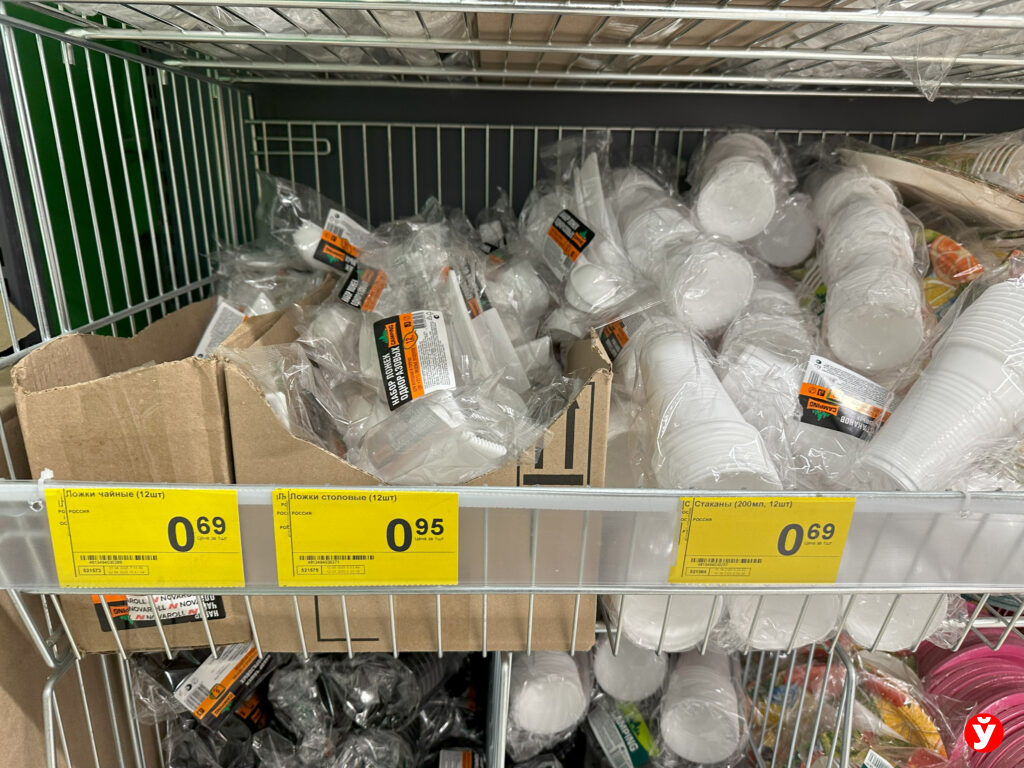 За копейки можно обновить запасы пластиковых стаканчиков и столовых приборов. Например, упаковка из 12 пластиковых стаканчиков объемом 200 мл стоит 69 копеек, столовых ложек 12 штук — 95 копеек, а чайных ложек 12 штук — 69 копеек.
